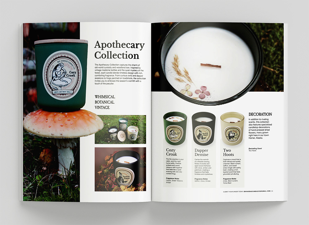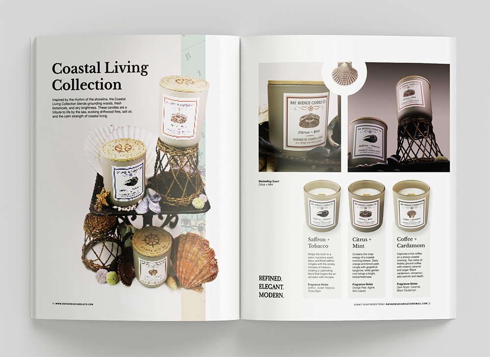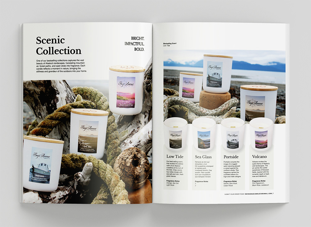 Some of the most important aspects of successfully implemented design involve the behind-the-scenes materials that normal customers don't see. This includes B2B sales catalogs, invoices, business cards, warning stickers, candle safety sheets, and more. Each piece supports the company’s organization and workflow, strengthening productivity and profit.