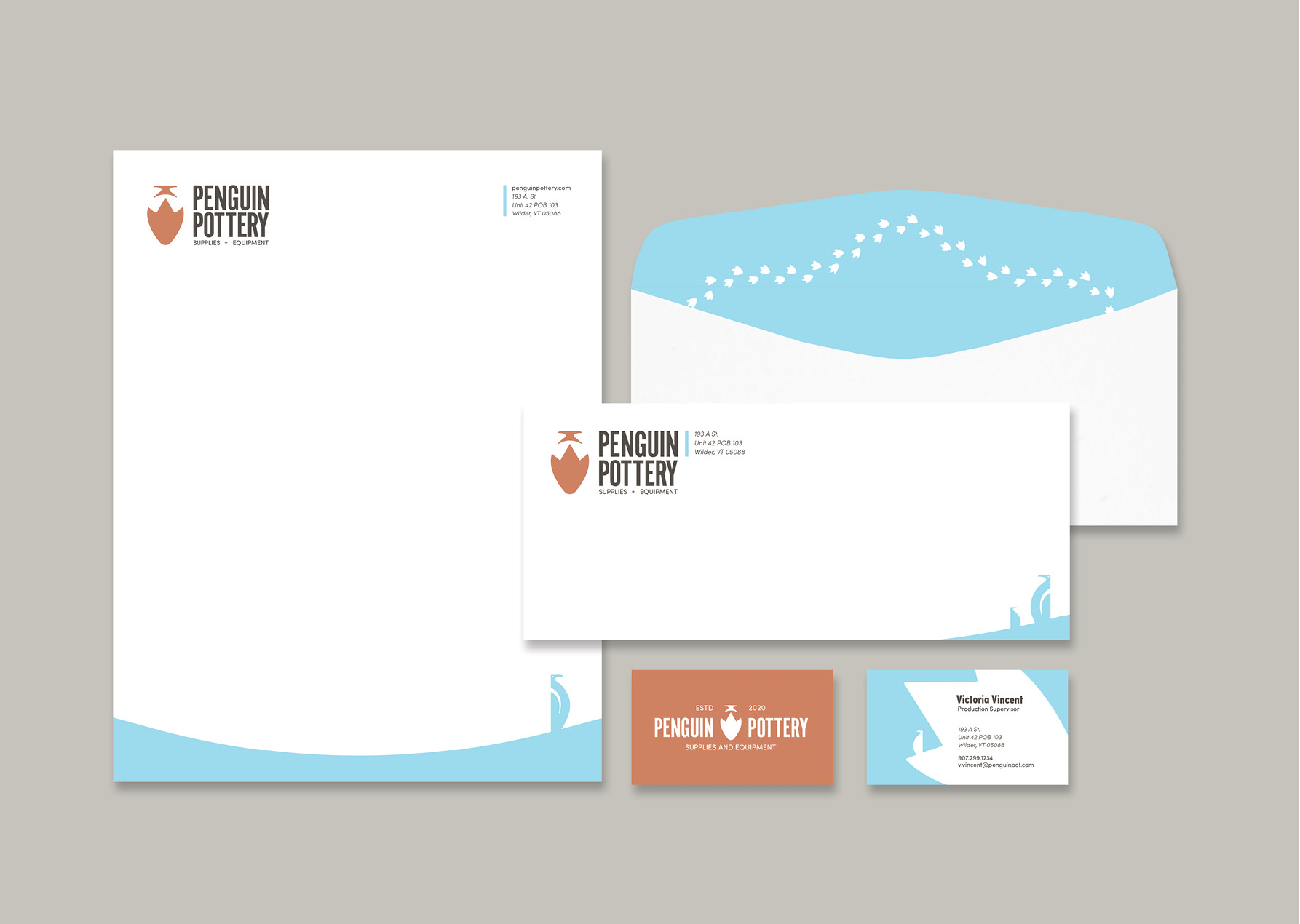 Penguin Pottery Supplies focuses on high-quality, sustainable ingredients in their products, straying away from toxic chemicals that might potentially harm the environment. All of their merchandising and ceramic products should carry the same sense of simplicity and cleanliness.